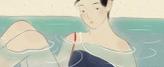 冷水なのにヒリヒリしにくい魔法のような仕上がりの「とろけて浸透する超軟水」 プライベートサウナルーム3-Dで水風呂にかけながさる超軟水 プライベートサウナルームの水深深い超軟水の水風呂につかる女性